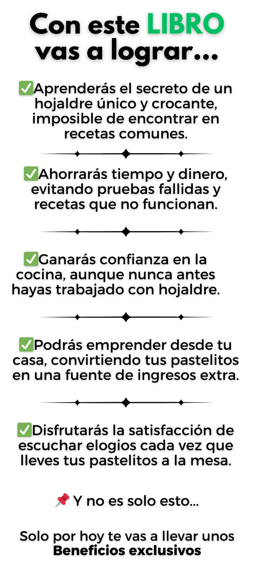 👉 Nuestro hojaldre es único, artesanal y probado, con un paso a paso que garantiza un resultado crujiente, dorado y perfecto en cada pastelito, nunca visto.